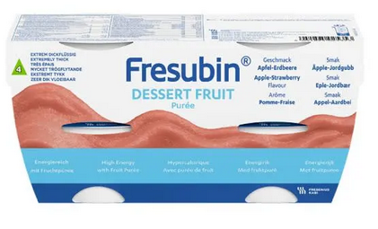 Velegnet som alternativ til næringsdrikk for alle som har behov for et næringstilskudd, for variasjon av smak og konsistens. Den fortykkede konsistensen gjør at Fresubin Dessert Fruit egner seg spesielt godt ved svelgeproblemer (dysfagi). Med et konsentrert innhold av alle næringsstoffer, slik at man får i seg mye næring på et lite volum. Hvert beger inneholder 200 kcal og 8,8 g protein. Kan dekkes på blå resept. Frisk og fruktig, med smak av eple.