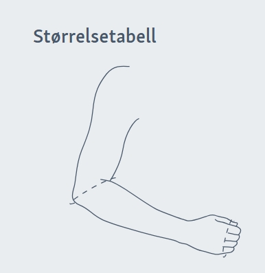 Veiledende verdier for hvor stramt festene skal sitte finner du i tabellen i pakningsvedlegget. Underarmens omkrets (målt 5 cm under albuen) skal brukes som referanseverdi. Stram stroppen til du oppnår verdien som vises i tabellen. Du kan justere trykket etter ønske.