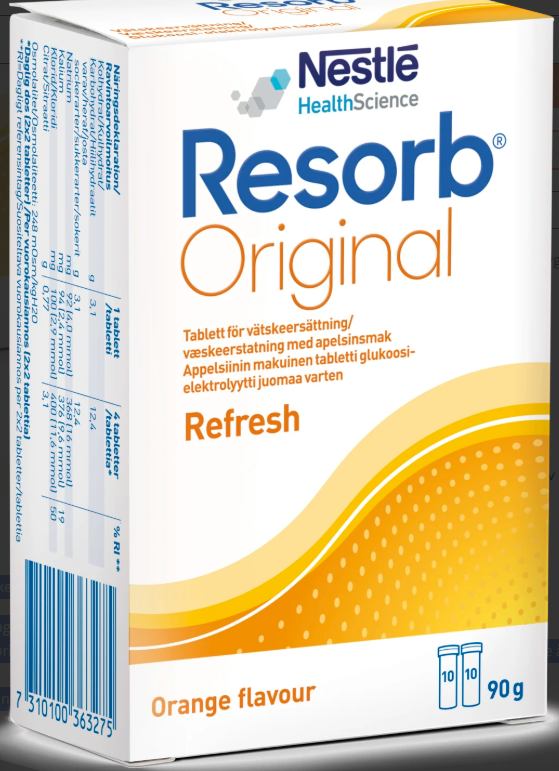 Resorb Original med appelsinsmak er en velsmakende og reseptfri væskeerstatning.