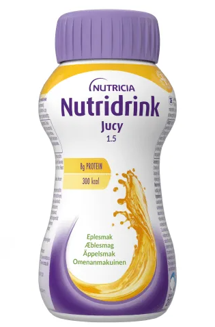 Nutridrink Juice Style er en klar og energirik næringsdrikk til kostbehandling av sykdomsrelatert underernæring når energibehovet er høyt eller matinntaket er lite. Inneholder myseprotein fra melk og har en energitetthet på 1,5 kcal/ml.