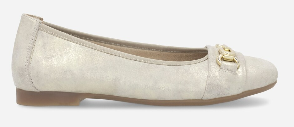 Lekker ballerinasko i gullfarge fra Remonte. Med en pen pynt foran. Modellen er myk, lett og sitter god på foten. Flotte til både kjoler og bukser. Normal passform, anbefaler å bestille den størrelsen man vanligvis bruker.