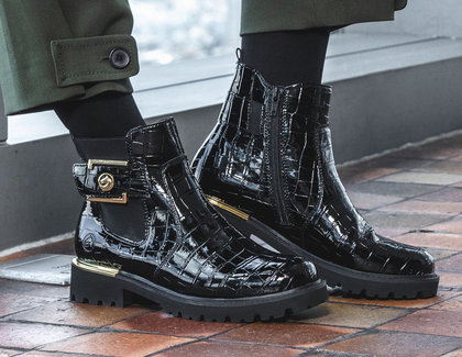 Flott skolett i svartlakk fra Remonte med lekre detaljer.