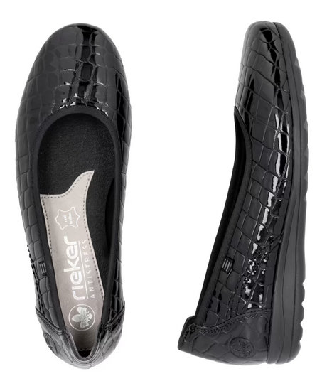 Rieker Ballerina Svart Lakk Snake Mønster antall