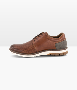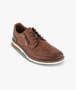 En stilren og komfortabel herresko som passer perfekt til både jobb og fritid. Skoen er laget i mykt, brunt skinn med perforet overflate som gir et moderne uttrykk og god ventilasjon gjennom dagen. Modellen har både snøring og praktisk glidelås på siden, slik at den er enkel å ta av og på, samtidig som den kan justeres for optimal passform. Riekers velkjente Antistress- såle gir god støtdemping, fleksibilitet og lett vekt-ideelt for lange dager på beina. Skoen er normal i størrelsen.