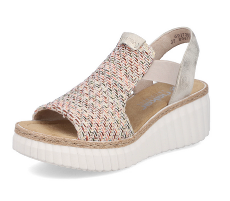 Lekre Sandaler fra rieker. Gode antisress såler som hjelper foten å slappe av. Nydelig jordiske farger med noe glitter i mellom. God støtte og gir deg en flott positur.
