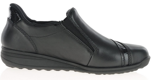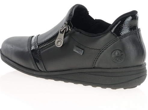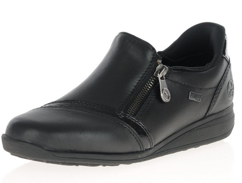 Lett og behagelig skolett fra Rieker i svart skinn. Skoene har glidelås på siden som gjør den enklere å ta på. Modellen har ekstra vidde og den har uttagbar såle. En flott skolett som passer til mange anledninger!