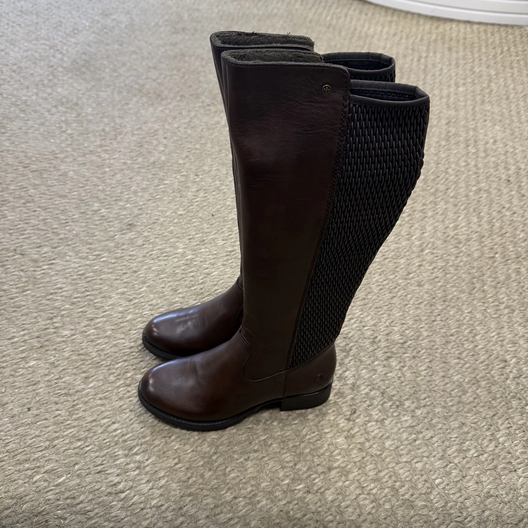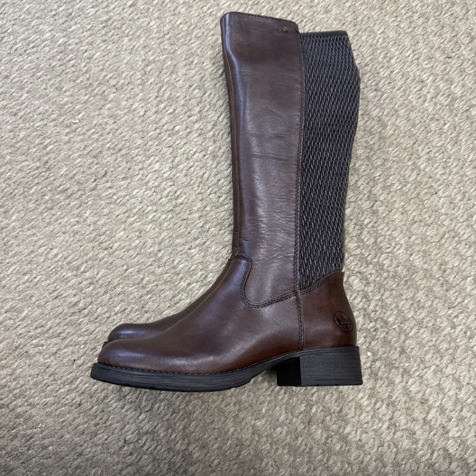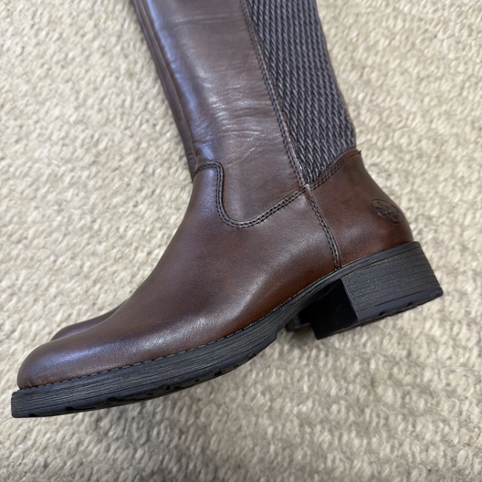 Rieker høye støvletter med elastiske flettemønsteret langs leggen. Gir et elegant preg. Glidelås på innsiden gjør det lett å ta støvletten av og på.