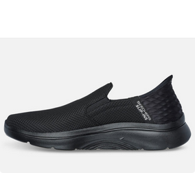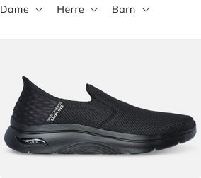Skechers Go Walk Arch Fit 2.0 Hands free 2 i svart farge. Slip-ins modell som du bare kan gå rett inn i og gir ekstra god støtte. Støtabsorberende mellomsåle er denne skoen perfekt for daglig bruk eller for en tur utendørs. Skoens yttersåle er utstyrt med ekstra støtputer som forsterker fjæringen så det blir mindre belasting på knær, hofter og rygg.