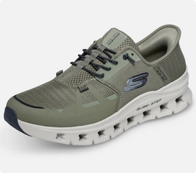 Skechers Glide-Step Slip ins er en lett og komfortabel fritids/gåsko med fokus på enkel påtagning og demping. Slip ins funksjonen gjør at du kan ta på skoen uten å bruke hendene. Den har elastiske lisser som gir et snørelignende utseende, men uten behov for å knyte. Den har Glide Step mellomsåle som gir støtdemping og en rullende, lett gange. Den er sporty og moderne med en nydelig farge. Skoen er normal i størrelsen