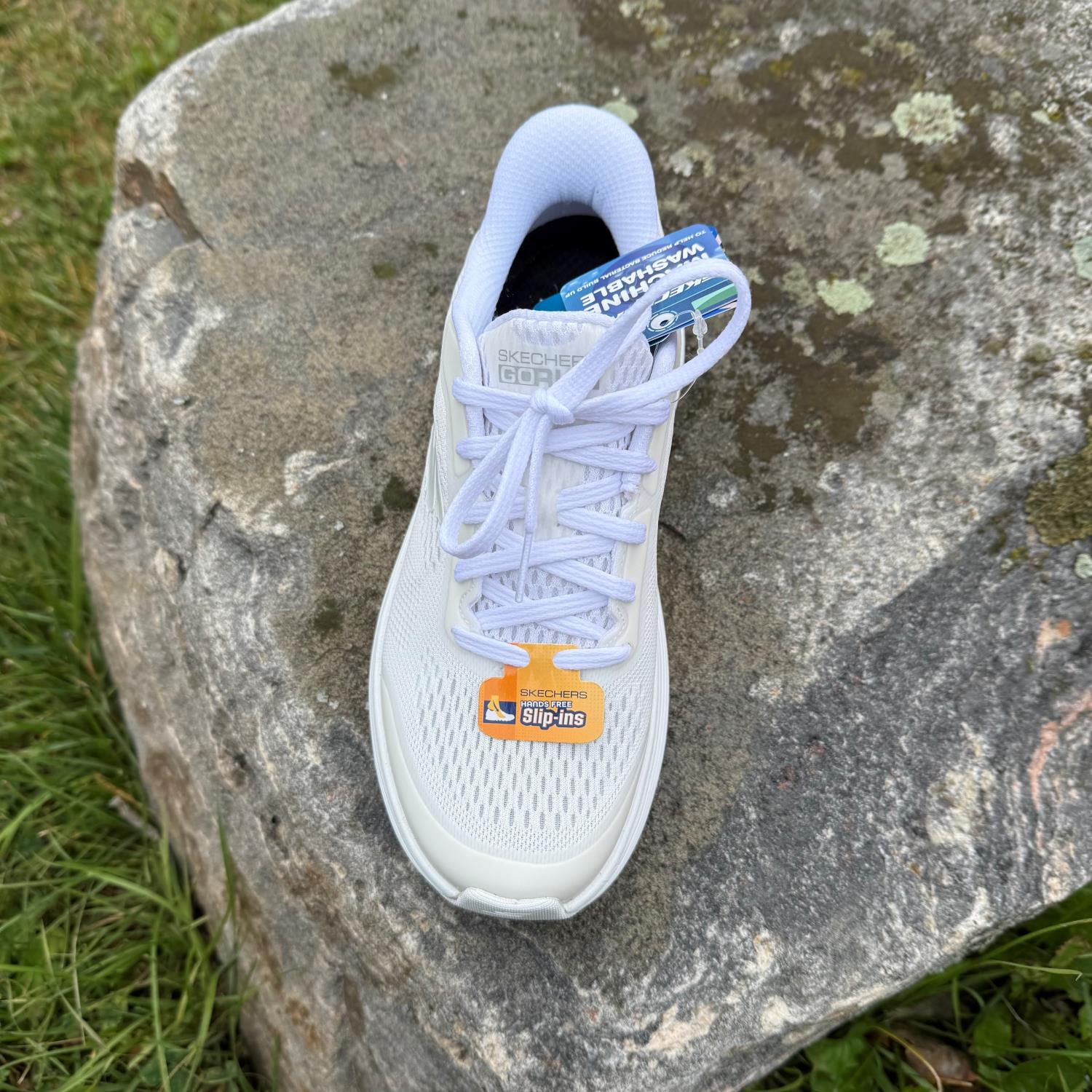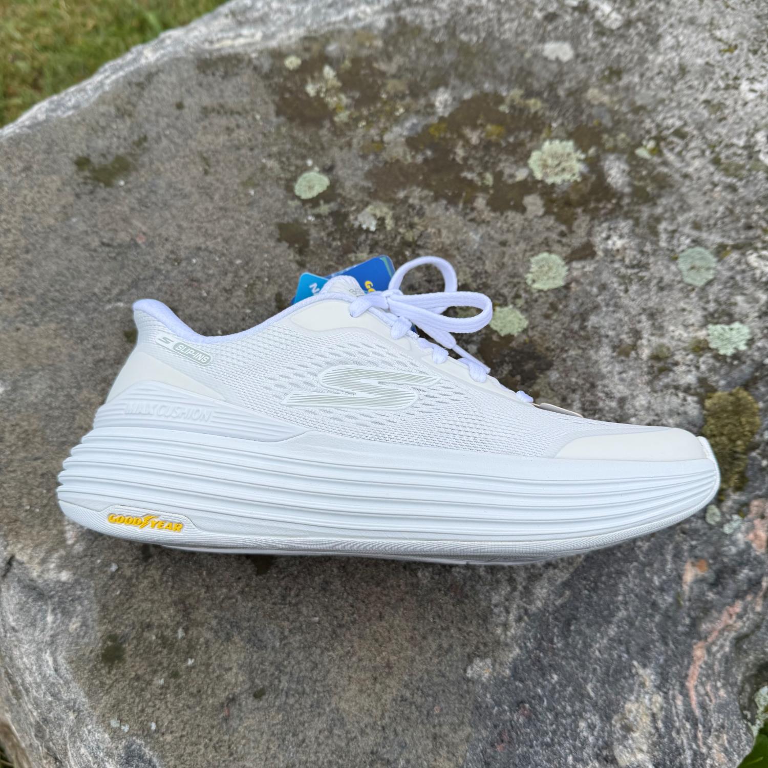 Skechers slip-ins Max Cushion. Komfort møter bærekraft i denne vegan-sneakeren. Med komfortabel Relaxed Fit-passform, Air-Cooled Memory Foam-innersåle, og fleksibel yttersåle med good year funksjon, får du lett og behagelig gange, samtidig som skoen er maskinvaskbar. Skechers Hands free slip-ins, trenger ikke å bøye seg for å få de på. godt for føttene, godt for verden.