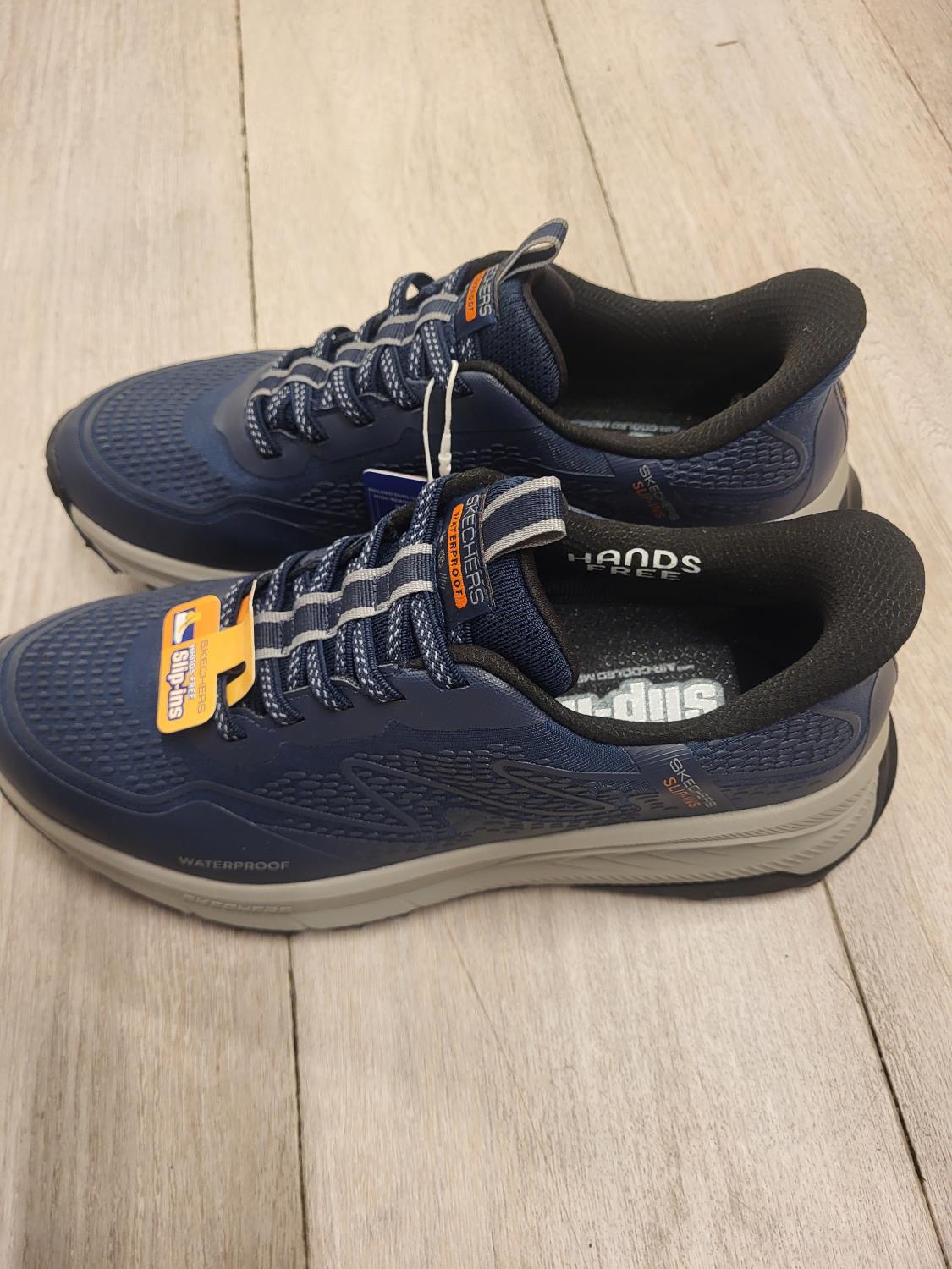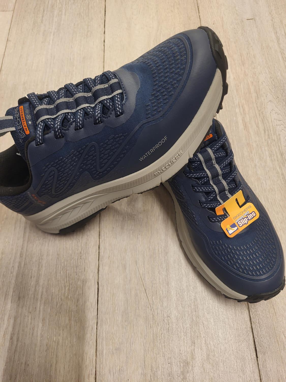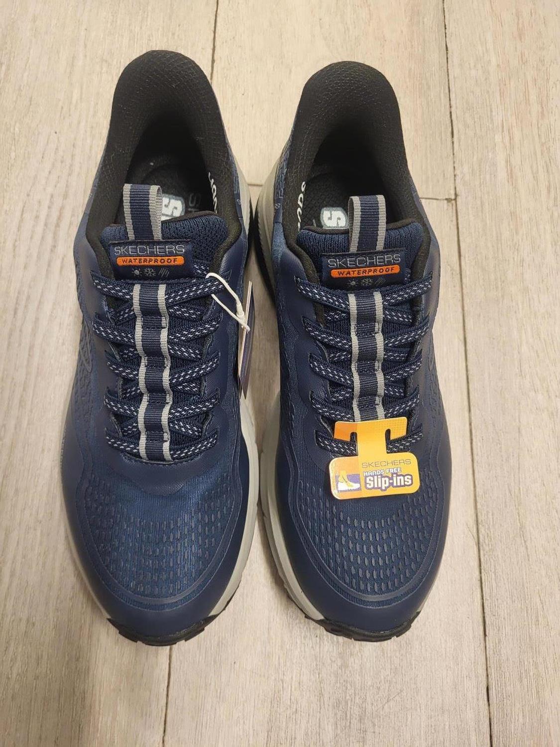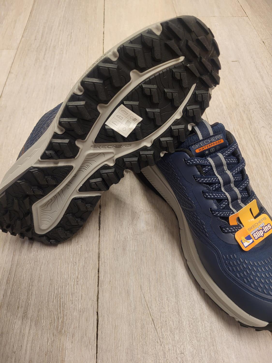 Flott vanntett sneakers til herre fra Skechers i mørkeblå farge.