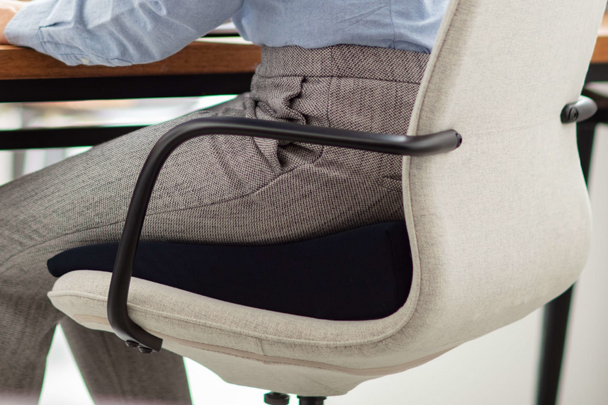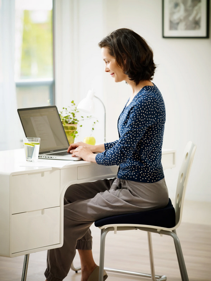 Kileformen gjør at bekkenet skyves frem når du sitter slik at ryggen får en automatisk oppreist stilling. Ideell for alle som jobber lenge i sittende stillinger, spesielt databrukere. Størrelse: 40 x 40 x 9/1 cm.