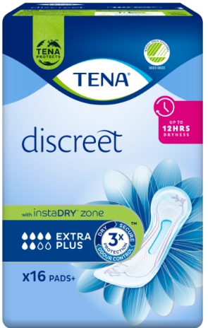 TENA Lady Extra Plus er et bind med InstaDry-teknologi som gjør at bindet kan absorbere større mengder urinlekkasjer som kommer plutselig. Produktet sprer og kapsler urinen inn i kjernen av produktet slik at det føles tørt mot huden.