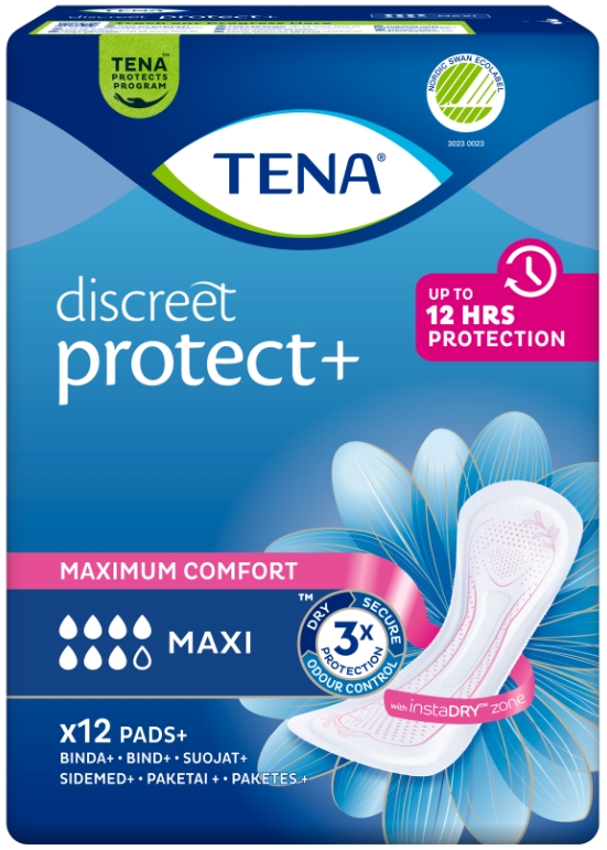 TENA Discreet Maxi Instadry er et bind for moderate lekkasjer.